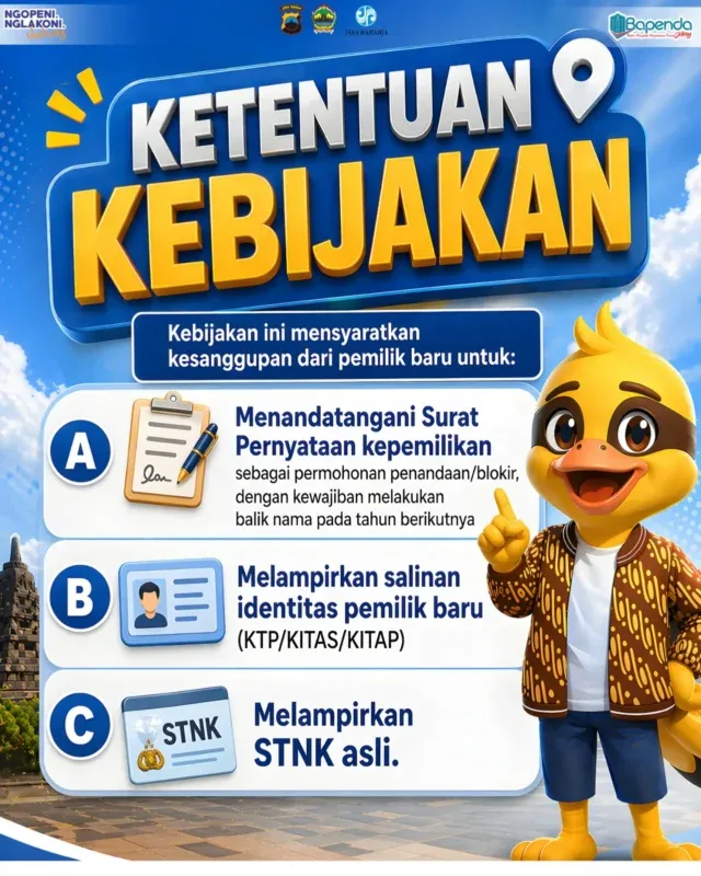“Pelayanan ini hanya memfasilitasi pembayaran pajak tahunan. Status kepemilikan kendaraan tetap mengacu pada dokumen yang sah, dan kewajiban balik nama tetap harus dilaksanakan sesuai ketentuan,” lanjutnya.