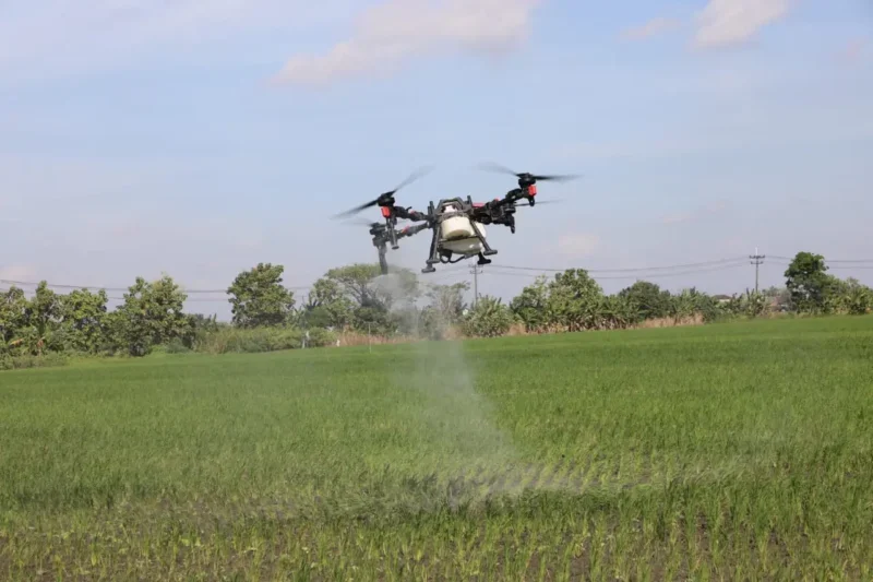 “Kalau untuk mengendalikan hama, drone ini sangat bagus. Bisa menjangkau sampai tanah bagian bawah. Kalau pakai tradisional itu lama, dan mungkin tidak bisa merata seperti drone,” tuturnya.